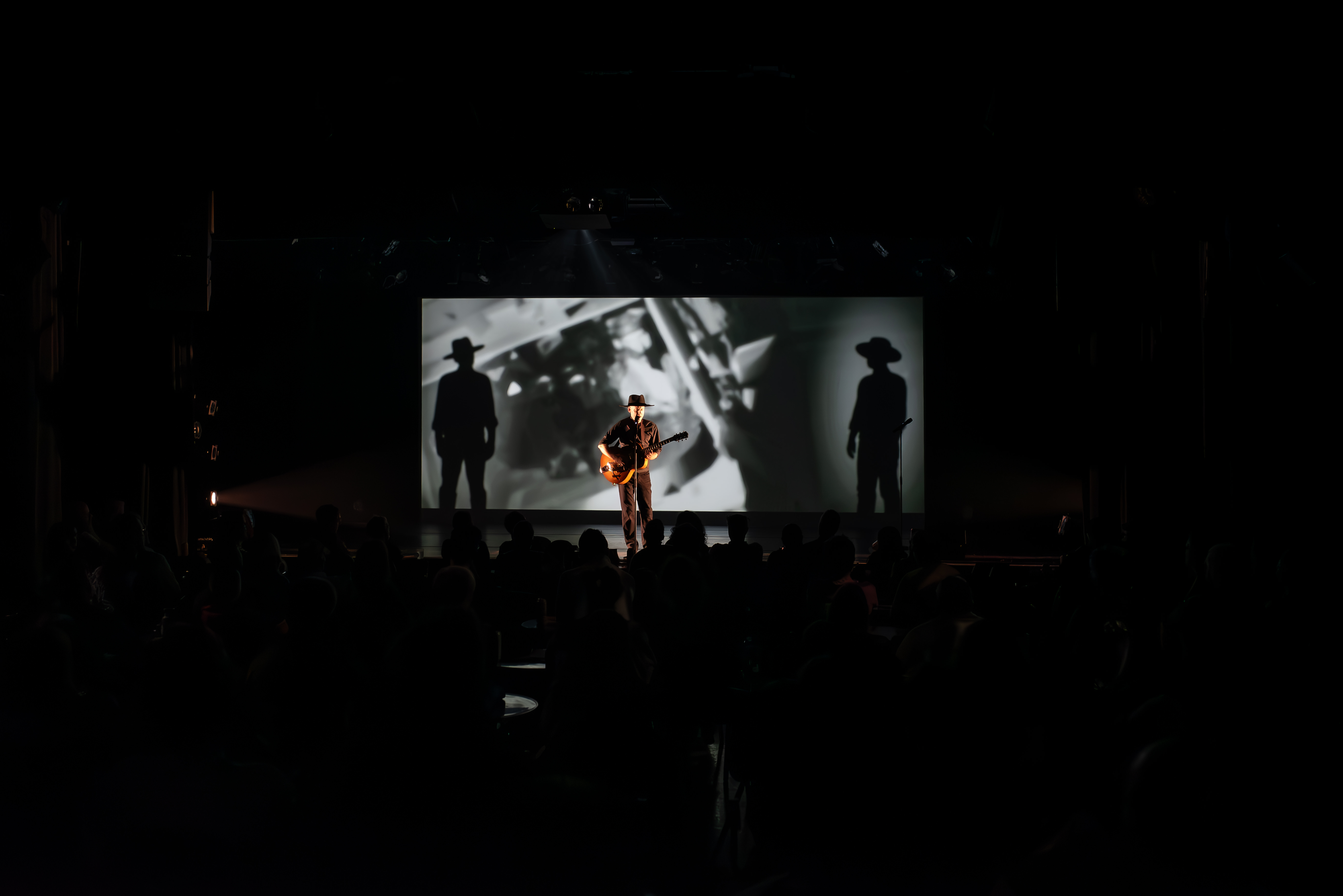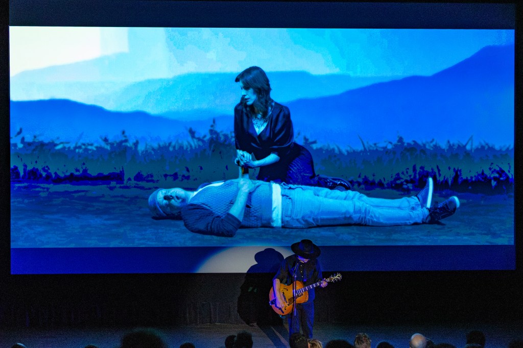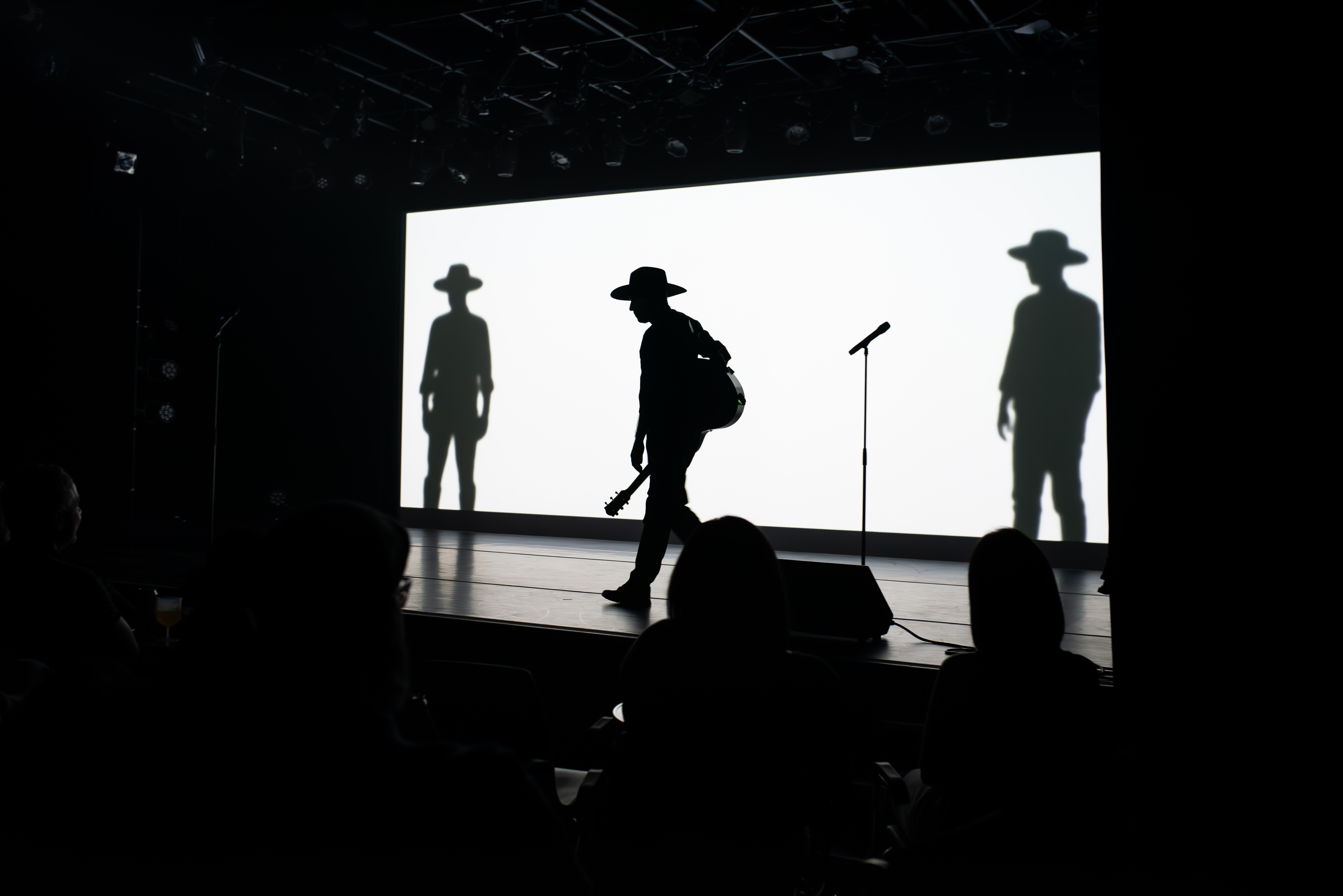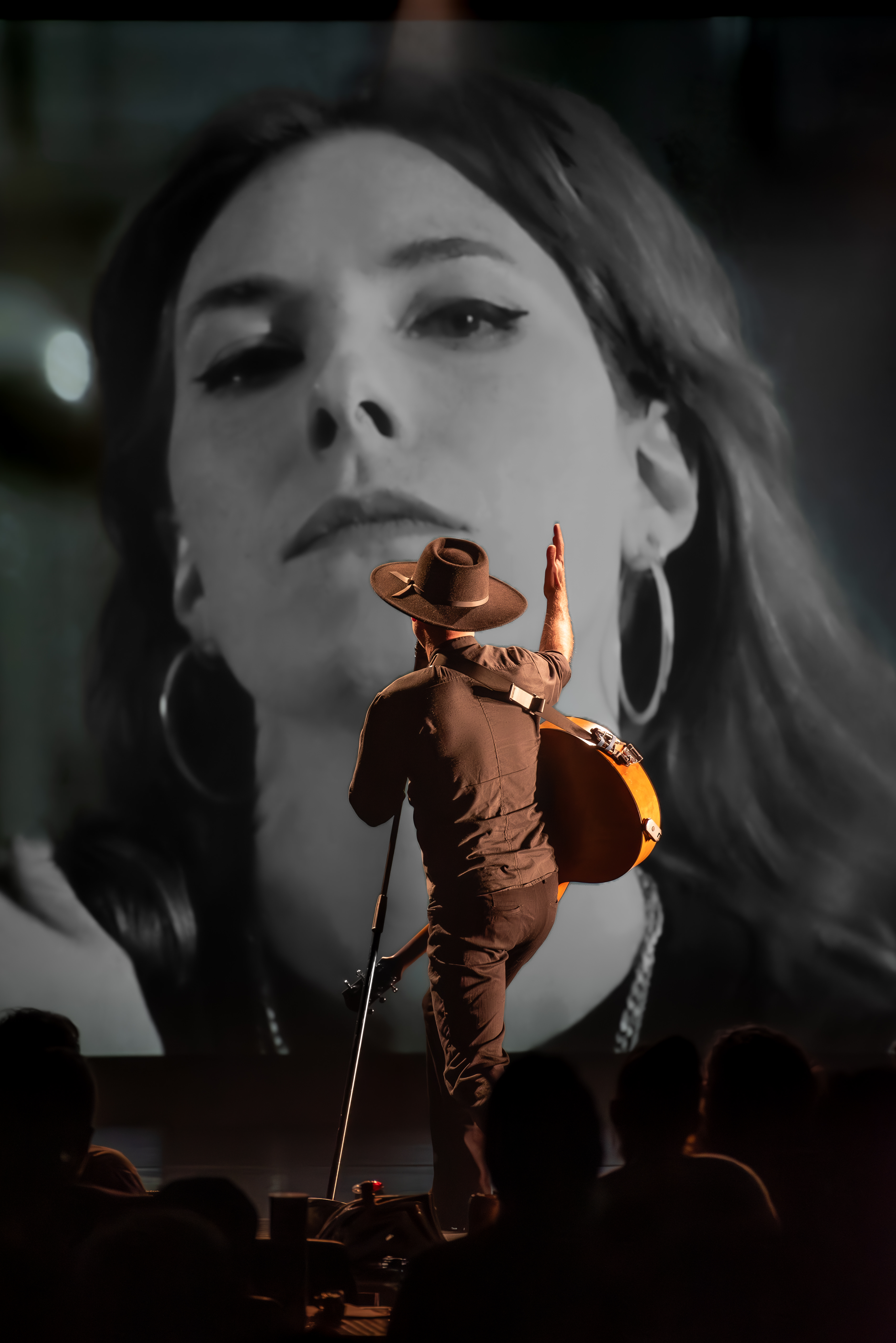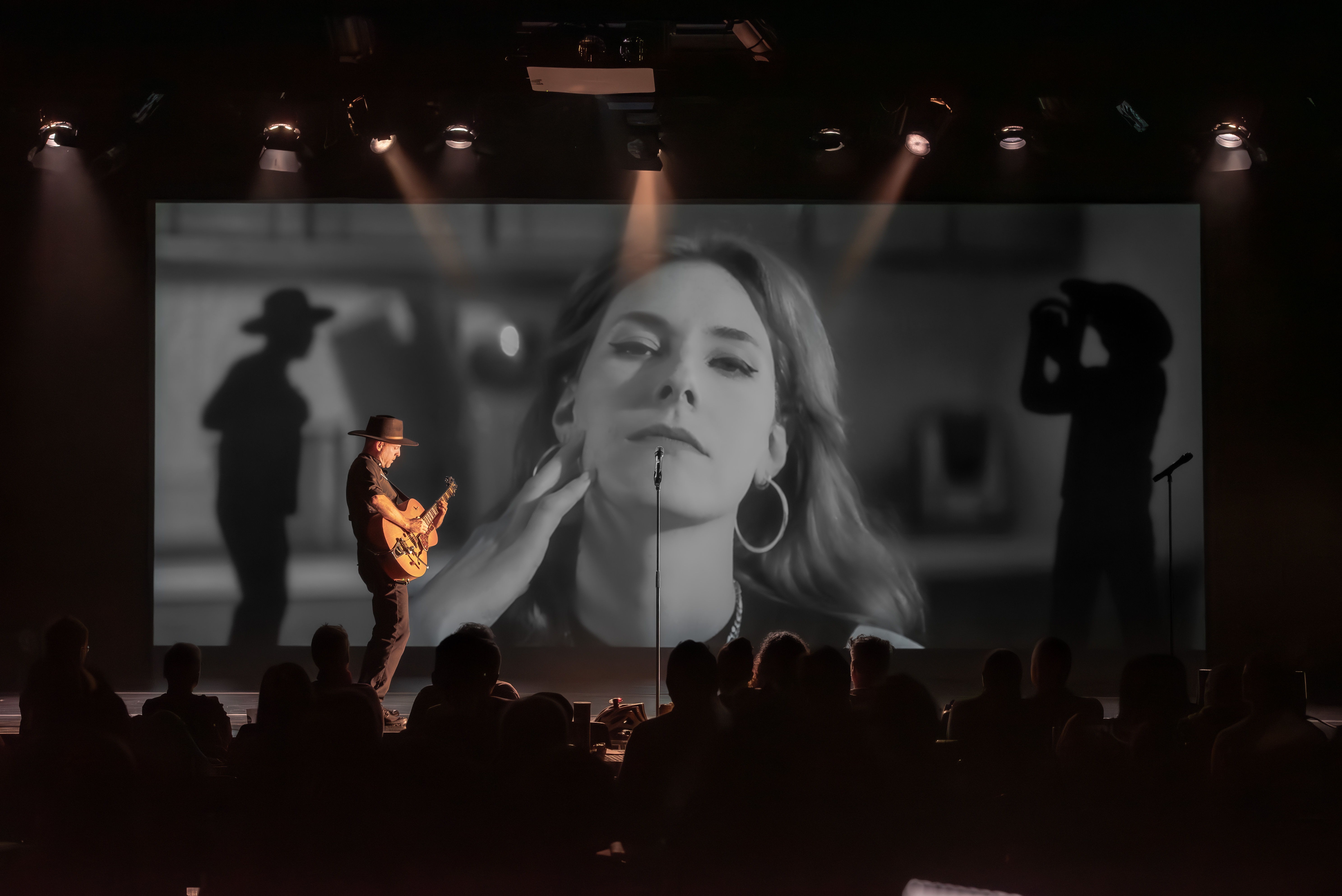 Une œuvre inclassable, entre vidéo d’art, concert, cinéma et vidéoclip, « En Suspens » brouille habilement les frontières des genres. Portée par une trame narrative simple mais universelle, la performance met en scène Dominiq Hamel, qui interprète en direct une bande sonore « kick ass », tandis que défile à l’écran le film de son alter ego musical. Sa complice Émilie Sigouin apparaît autant devant la caméra que derrière, signant la réalisation des images projetées parfois en couleur ou dans un somptueux noir et blanc. Cette mise en abime crée un dialogue constant entre la musique live et les images, renforçant l’impact émotionnel de l’ensemble. Au-delà de la prouesse technique, En Suspens s’impose comme un concert-film sincère et émouvant, une expérience immersive qui donne envie de prendre des risques et d’embrasser pleinement la vie.